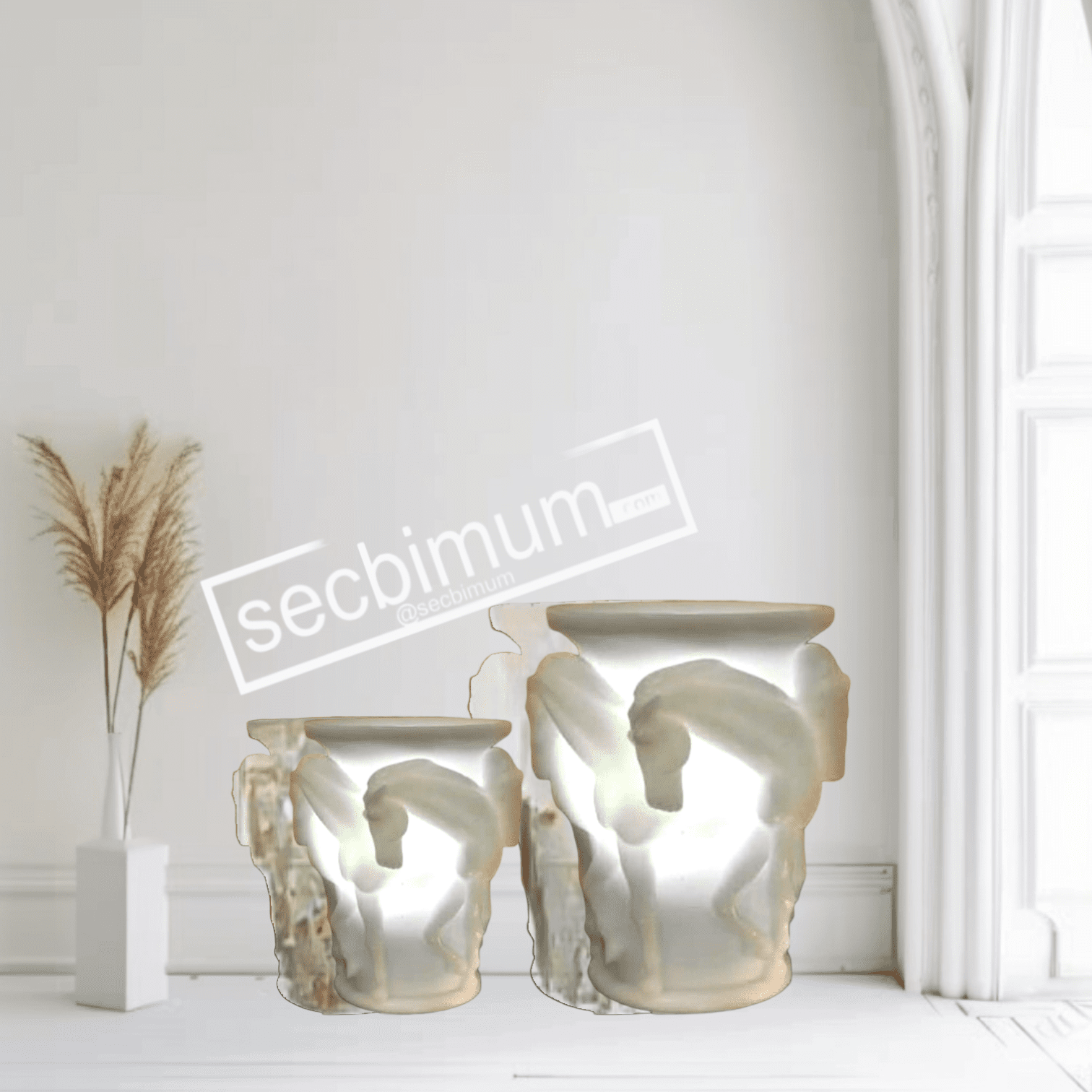 • Açıklamaq Büyük atlı fener mumumuz 23x17 cm boyutlarında 2250 gr ağırlığındadır. Satış Fiyatı  425 TL q Küçük atlı fener mumumuz 17X13 cm boyutlarında 1150 gr ağırlığındadırq Satış Fiyatı 295 TL q Krem rengi mevcutturq İçerisinde yakılması için 2 adet tealight mum gönderilmektedirq Yanan mumu belirli ara...