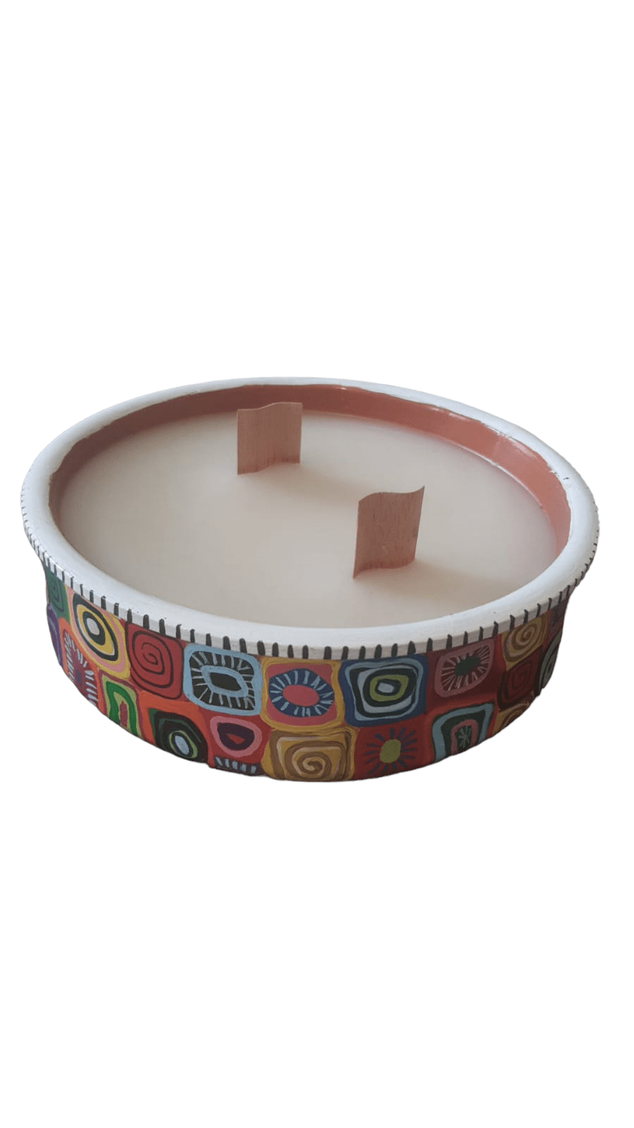 El yapımı boyanmış olan çömlek kabımız soya wax mum ile doldurulmuştur.