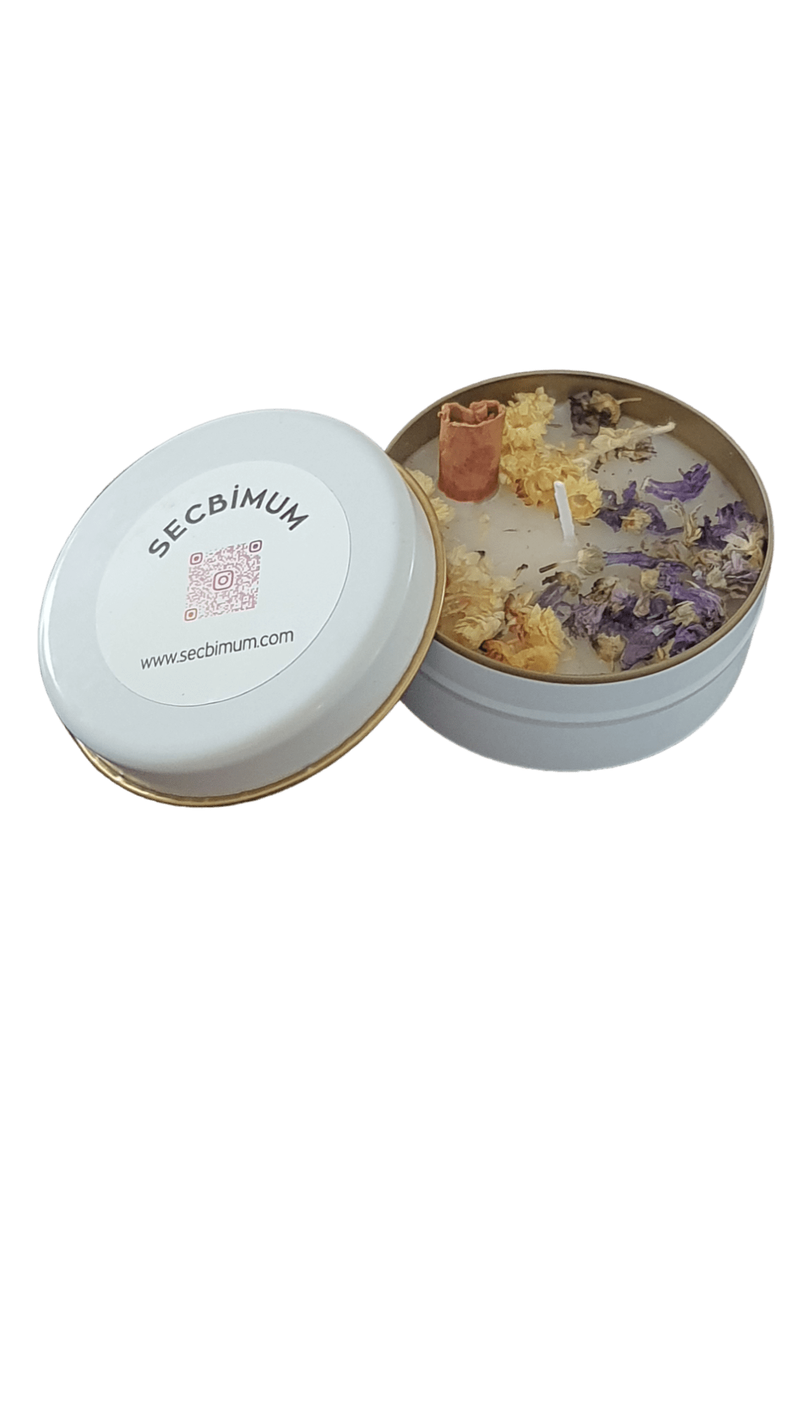 Teneke kutu mum kabımız soya wax mum ile doldurulmuştur.